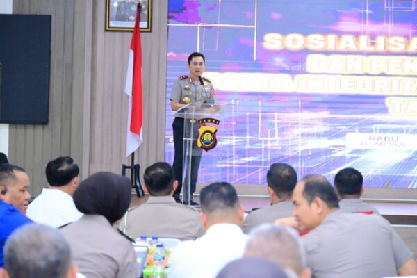 Tajam24Jam.Com Jambi, 14 Januari 2026 — Kepolisian Daerah (Polda) Jambi menggelar kegiatan Sosialisasi DIPA RKA-K/L dan Penandatanganan Pakta Integritas Satker Polda Jambi Tahun Anggaran 2026 pada Rabu, (14/1/2026) Kegiatan yang yang berlangsung di Aula Lantai 3 Gedung Siginjai Mapolda Jambi tersebut dipimpin langsung oleh Kapolda Jambi Irjen Pol. Krisno H. Siregar dan dihadiri Wakapolda Jambi Brigjen Pol. M. Mustaqim, Irwasda Polda Jambi Kombes Pol. Jannus Parlindungan Siregar, para Pejabat Utama Polda Jambi, para Kasatker/KPA beserta Kasubagrenmin, Kabagren Polres/Ta, serta Kaurkeu dan Kasikeu jajaran Polda Jambi. Rangkaian kegiatan diawali dengan menyanyikan Lagu Indonesia Raya, pembacaan doa, laporan perwira yang ditunjuk, serta paparan sosialisasi DIPA RKA-K/L Satker Jajaran Polda Jambi Tahun Anggaran 2026 oleh Karo Rena Polda Jambi. Dalam paparan tersebut disampaikan bahwa alokasi anggaran Polda Jambi T.A. 2026 difokuskan pada lima program utama, yakni profesionalisme SDM Polri, penyelidikan dan penyidikan tindak pidana, modernisasi almatsus sarana dan prasarana Polri, pemeliharaan keamanan dan ketertiban masyarakat, serta dukungan manajemen. Dalam sambutan dan arahannya, Kapolda Jambi menegaskan bahwa penandatanganan Pakta Integritas merupakan bentuk komitmen bersama seluruh satuan kerja untuk melaksanakan anggaran secara transparan, akuntabel, dan sesuai ketentuan peraturan perundang-undangan. “Pakta Integritas ini bukan sekadar seremonial, tetapi merupakan pernyataan janji dan komitmen moral seluruh Satker untuk patuh terhadap ketentuan yang berlaku serta bertanggung jawab dalam pengelolaan anggaran,” tegas Irjen Pol. Krisno H. Siregar Kapolda Jambi juga menekankan agar seluruh Satker segera mempelajari dan mengkaji DIPA RKA-K/L T.A. 2026, menunjuk pejabat pengelola perbendaharaan, menyusun rencana umum pengadaan serta disbursement plan sejak awal tahun anggaran guna menghindari penumpukan realisasi di akhir tahun. “Saya minta seluruh Satker menyusun perencanaan penyerapan anggaran secara sistematis, melakukan analisa dan evaluasi kesesuaian kegiatan dengan output, serta segera melakukan revisi apabila ditemukan ketidaksesuaian,” ucap Kapolda Jambi Selain itu, Kapolda Jambi menekankan pentingnya percepatan proses pengadaan barang dan jasa, optimalisasi penggunaan e-procurement, peningkatan koordinasi dengan LKPP, serta kewajiban mengutamakan penggunaan produk dalam negeri sesuai ketentuan yang berlaku. “Pengadaan barang dan jasa harus selesai paling lambat akhir Februari 2026, dan seluruh Satker wajib mengoptimalkan penggunaan produk dalam negeri sebagai bentuk dukungan terhadap kebijakan pemerintah,” pungkas Kapolda Jambi. Kegiatan dilanjutkan dengan penandatanganan Pakta Integritas Tahun Anggaran 2026 oleh perwakilan Satker, yakni Karo Ops Polda Jambi dan Kapolresta Jambi, bersama Kapolda Jambi. Penulis tim