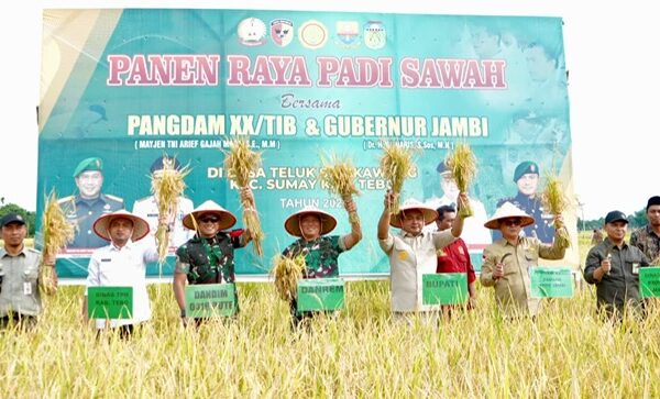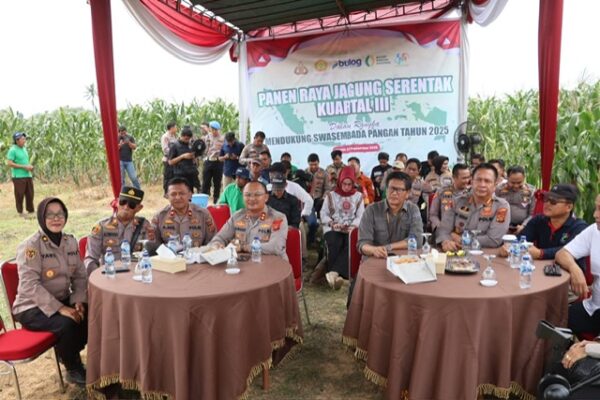 Tajam24Jam.Com Jambi, 27 September 2025 – Dalam rangka mendukung program nasional Swasembada Pangan Tahun 2025, Polresta Jambi melaksanakan kegiatan “Panen Raya Jagung Serentak Kuartal III” yang dipusatkan di lahan Kelompok Tani Tunas Kaya, berlokasi di Jalan Kol. M. Kukuh RT 15 Kelurahan Paal V, Kecamatan Kota Baru, Kota Jambi, Sabtu (27/09/2025) pagi. Kegiatan tersebut dipimpin langsung oleh Kapolresta Jambi Kombes Pol Boy Sutan Binanga Siregar, S.I.K., M.H. didampingi Wakapolresta AKBP Nurhadiansyah, S.I.K.,M.H., bersama Pejabat Utama dan seluruh Kapolsek jajaran Polresta Jambi, serta turut dihadiri oleh; Kepala Bulog Kanwil Jambi diwakili Asisten Manager Manajemen Mutu Bpk. Robin Hidayat, Kadis Pertanian dan Ketahanan Pangan Kota Jambi, Kepala BPP Kota Jambi, Sekcam Kota Baru, Lurah Paal Lima Kec. Kota Baru beserta Kelompok Tani Tunas Jaya. Kapolresta Jambi Kombes Pol Boy Sutan Binanga Siregar dalam sambutannya menyampaikan bahwa Polri tidak hanya bertugas menjaga keamanan dan ketertiban masyarakat, namun juga hadir mendukung ketahanan pangan nasional. Panen raya ini adalah bentuk nyata sinergitas Polri bersama kelompok tani dan pemerintah daerah. Ketahanan pangan menjadi pilar penting dalam menjaga stabilitas sosial dan ekonomi masyarakat. Polresta Jambi akan terus hadir dan mendukung langkah-langkah strategis dalam menjaga ketersediaan dan distribusi pangan. Beliau juga menekankan bahwa melalui kegiatan seperti ini, Polri ingin membangun kepercayaan dan kedekatan dengan masyarakat, sekaligus mendorong semangat petani lokal agar lebih produktif dan mandiri, “ujar Kombes Pol Boy”. Kegiatan panen raya berjalan dengan lancar, penuh kebersamaan dan semangat gotong royong antara jajaran kepolisian, kelompok tani, dan perangkat pemerintahan. Diharapkan hasil panen ini dapat membantu pemenuhan kebutuhan pangan masyarakat Kota Jambi serta mendukung program ketahanan pangan nasional yang dicanangkan oleh pemerintah pusat. Penulis Tim