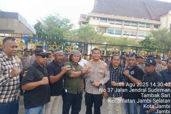 Tajam24Jam.Com Jambi, 11 Agustus 2025 — Puluhan massa dari Aliansi Keadilan Bersama Polri (AKBP) kembali berunjuk rasa di Mapolda Jambi menuntut janji Kabid Humas Polda Jambi, Kombes Pol Mulia Prianto, yang sebelumnya berkomitmen memanggil AKBP Mat Sanusi terkait pencalonannya sebagai Ketua KONI Jambi. Aksi ini digelar usai AKBP Mat Sanusi resmi dilantik sebagai Ketua KONI Jambi periode 2025–2029 oleh Ketua Umum KONI Pusat Marciano Norman di Rumah Dinas Gubernur Jambi, Senin pagi. Massa menilai pelantikan ini melanggar aturan larangan rangkap jabatan bagi anggota kepolisian. Koordinator aksi, Leon, menuding Kapolda Jambi Irjen Pol H. Siregar tidak tegas. Ia mendesak Kapolda memberi pilihan jelas kepada Mat Sanusi: tetap menjadi polisi atau fokus memimpin KONI. Aliansi AKBP menuntut pembatalan pelantikan, penegakan aturan sesuai AD/ART KONI, evaluasi kinerja Kapolda oleh Kapolri, serta penurunan tim Propam untuk memastikan penegakan hukum berjalan transparan. Mereka juga mengancam akan bermalam di Mapolda Jambi jika tidak ada kejelasan. Aksi berlangsung tertib dan massa diterima langsung oleh Kabid Humas Polda Jambi Kombes pol Mulia prianto untuk menyampaikan tuntutan mereka. Penulis Tim