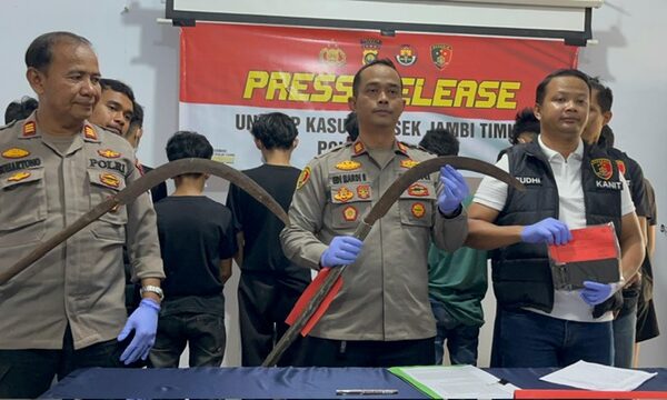 Tajam24Jam.Com JAMBI, 11 Oktober 2025 – Tim gabungan dari Resmob Polda Jambi, Jatanras Polresta Jambi, dan Unit Reskrim Polsek Jambi Timur berhasil mengamankan sembilan pelajar yang terlibat tawuran di kawasan Jalan Baru, Kota Jambi, pada Jumat malam (10/10/2025). Kapolresta Jambi Kombes Pol Boy Sutan Binaga Siregar melalui Kapolsek Jambi Timur AKP Edi Mardi menjelaskan, pengungkapan kasus ini berawal dari beredarnya video amatir di media sosial yang memperlihatkan sekelompok remaja mengendarai sepeda motor sambil membawa senjata tajam jenis enggrek di Jalan Lingkar Timur II, Kelurahan Payo Selincah, Kecamatan Paal Merah. “Begitu video itu viral, tim gabungan langsung bergerak melakukan penyelidikan dan berhasil mengamankan sembilan orang pelajar yang diketahui baru saja melakukan tawuran,” ujar AKP Edi Mardi, Sabtu (11/10/2025). Dari hasil penangkapan, polisi menyita sejumlah barang bukti berupa senjata tajam, telepon genggam, serta beberapa unit sepeda motor. Berdasarkan pemeriksaan, para pelajar tersebut tergabung dalam kelompok motor bernama SPRIPAT yang beranggotakan sekitar 12 orang. Mereka diketahui terlibat bentrokan dengan kelompok lawan yang jumlahnya mencapai sekitar 20 orang. “Karena kalah jumlah, kelompok SPRIPAT melarikan diri setelah tawuran berlangsung singkat. Tidak ada korban luka maupun korban jiwa dalam kejadian tersebut,” tambah Kapolsek. Setelah diamankan, orang tua para pelajar dipanggil ke Polsek Jambi Timur untuk menyaksikan langsung proses pembinaan. Suasana haru sempat terjadi saat salah satu pelajar menangis dan meminta maaf kepada orang tuanya atas perbuatannya. Pihak kepolisian mengimbau agar para orang tua dan pihak sekolah lebih aktif melakukan pengawasan serta pembinaan terhadap anak-anak agar tidak terlibat dalam aksi kekerasan maupun kelompok motor yang meresahkan masyarakat. “Kasus seperti ini tidak boleh terulang. Kami akan terus berkoordinasi dengan sekolah dan pihak terkait untuk mencegah terjadinya tawuran pelajar di Kota Jambi,” tegas AKP Edi Mardi. Penulis Tim
