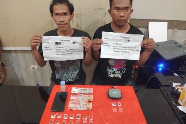 Tajam24Jam.Com Jambi, Senin 19/5/2025 – Tim Opsnal Satresnarkoba Polresta Jambi berhasil mengamankan dua orang laki-laki terduga pelaku tindak pidana narkotika pada Jumat malam, 16 Mei 2025, sekitar pukul 20.30 WIB. Penangkapan dilakukan di dua lokasi berbeda, yakni di daerah Kelurahan Rawasari, Kecamatan Alam Barajo, dan di sebuah kamar kost di daerah Kecamatan Telanaipura, Kota Jambi. Kedua pelaku yang diamankan berinisial H (25), warga Rawasari, Kota Jambi, dan EH (27), Kabupaten Muaro Jambi. Dari tangan H, petugas menyita 14 paket narkotika jenis sabu dengan berat bruto 5,18 gram, satu botol bekas, satu unit handphone, serta uang tunai Rp 300 ribu, Sementara dari EH diamankan dua paket sabu dengan berat bruto 1,18 gram, dua plastik klip bening, dan satu kotak AMINO warna abu. Kapolresta Jambi Kombes Pol Boy Sutan Binanga Siregar melalui Kasi Humas Polresta Jambi, Ipda Deddy mengatakan, penangkapan ini bermula dari informasi masyarakat yang diterima pihak kepolisian terkait peredaran narkoba di wilayah Simpang Rimbo. Petugas kemudian melakukan penyelidikan dan berhasil mengamankan pelaku H. Saat diinterogasi, ia mengaku sabu tersebut miliknya dan juga telah menjualnya kepada EH. Petugas lalu melakukan pengembangan dan menangkap EH di kamar kosnya. “Penangkapan ini berkat informasi dari masyarakat yang langsung ditindaklanjuti oleh tim di lapangan. Kedua pelaku kini telah diamankan dan masih menjalani pemeriksaan lebih lanjut,” kata Ipda Deddy saat dikonfirmasi Jambi Ekspres, Senin (19/05/2025). Lebih lanjut, Ipda Deddy menjelaskan bahwa kedua pelaku dijerat dengan Pasal 114 ayat (1) atau Pasal 112 ayat (1) Undang-Undang Republik Indonesia Nomor 35 Tahun 2009 tentang Narkotika. “Polresta Jambi terus berkomitmen memberantas peredaran narkoba di wilayah hukum kami. Kami juga mengimbau masyarakat agar tidak ragu melaporkan aktivitas mencurigakan yang berkaitan dengan narkotika,” pungkasnya. Penulis Tim